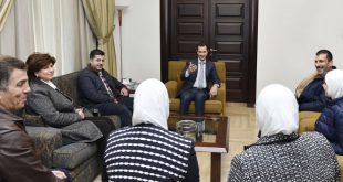 دمشق-سانا استقبل السيد الرئيس بشار الأسد اليوم عددا من الصناعيين من دمشق وريفها ممن تضرروا خلال الأزمة وخسروا منشآتهم وعادوا إلى العمل ضمن ورشات صغيرة. دار الحديث حول المصاعب التي يواجهها الصناعيون السوريون في ظروف الأزمة والحلول التي يمكن وضعها …