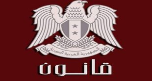 دمشق-سانا أصدر السيد الرئيس بشار الأسد اليوم القانون رقم (1) لعام 2017 القاضي باعتبار العسكري المصاب الذي توفي نتيجة تفاقم إصابته بعد انتهاء خدمته شهيدا. وفيما يلي نص القانون.. القانون رقم (1) رئيس الجمهورية بناء على أحكام الدستور. وعلى ما …