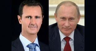 دمشق-سانا تلقى السيد الرئيس بشار الأسد اتصالاً هاتفياً من الرئيس الروسي فلاديمير بوتين هنأه فيه بتحرير حلب. وبحث الاتصال العملية السياسية المقبلة في سورية وشكر خلاله الرئيس الأسد جهود الرئيس بوتين وروسيا التي كانت المشارك الأساسي مع الحلفاء في تحرير حلب. …