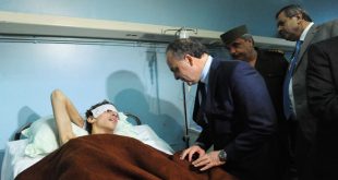 دمشق-سانا زار رئيس مجلس الوزراء المهندس عماد خميس مساء أمس الجرحى الذين أسعفوا إلى مشفى دمشق بعد إصابتهم نتيجة الاعتداء الإرهابي بقذيفة صاروخية على سوق شعبي في حي كشكول بمدينة جرمانا في ريف دمشق. وجال رئيس مجلس الوزراء على الشعب …