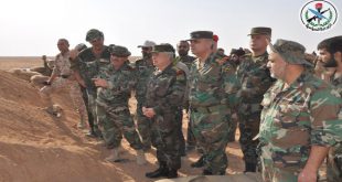 ديرالزور-سانا بتوجيه من السيد الرئيس الفريق بشار الأسد القائد العام للجيش والقوات المسلحة قام العماد علي عبدالله أيوب رئيس هيئة الأركان العامة للجيش والقوات المسلحة بجولة ميدانية تفقد فيها قواتنا العاملة في مدينة ديرالزور وريفها التقى خلالها القادة الميدانيين والمقاتلين …