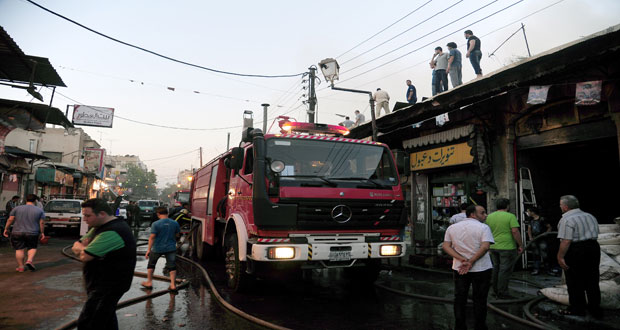 إخماد حريق نشب بمستودع للمواد الغذائية في حي الميدان
