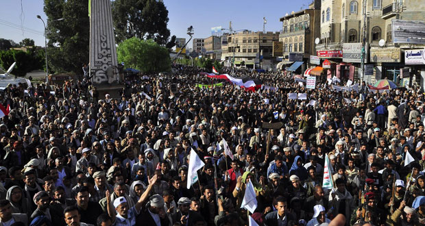 آلاف اليمنيين يتظاهرون رفضا لقرار مجلس الأمن الأخير واستنكارا لغارات طائرات نظام آل سعود 2015-04-17 المزيد