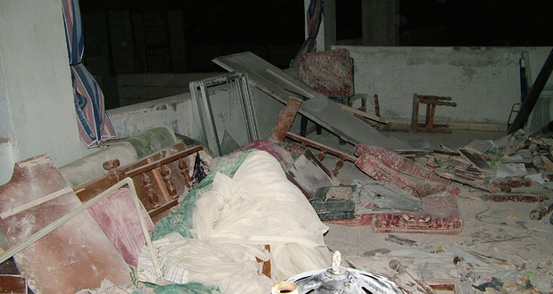 أضرار مادية ناجمة عن اعتداء إرهابي بقذائف صاروخية على أحياء في اللاذقية