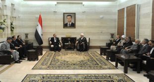 دمشق-سانا بحث رئيس مجلس الوزراء المهندس عماد خميس خلال لقائه وفدا من علماء الدين من الجمهورية الإسلامية الإيرانية برئاسة محسن أراكي الأمين العام للمجمع العالمي للتقريب بين المذاهب الإسلامية اليوم دور علماء الدين في مواجهة الفكر الإرهابي الذي يهدف إلى …