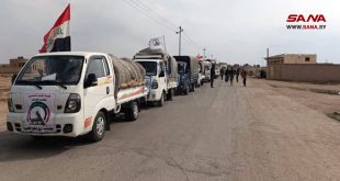 دير الزور-سانا وصلت اليوم قافلة مساعدات عراقية جديدة مؤلفة من 70 آلية إلى معبر البوكمال في محافظة دير الزور
