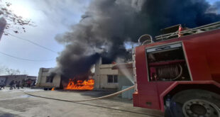 دمشق-سانا أفاد مراسل سانا بأن حريقاً اندلع في صهريج مازوت ببناء ملاصق للمنطقة الحرة بالبرامكة بدمشق وفرق الإطفاء