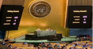 نيويورك-سانا صوتت إحدى لجان الجمعية العامة للأمم المتحدة اليوم بأغلبية ساحقة لصالح قرار يقضي بحق الشعب الفلسطيني