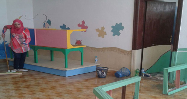 طلاب كلية الهندسة المعمارية بجامعة تشرين ينفذون معسكراً انتاجياً لتحسين الفراغ في روضة أطفال