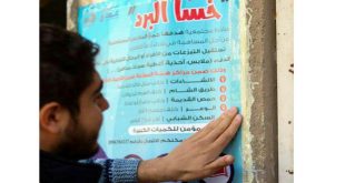 حمص-سانا خسا البرد مبادرة مجتمعية هدفها جمع الملابس المستعملة وإعادة تدويرها وتوزيعها على الفئات المحتاجة أطلقها مؤخرا مشروع عون للإغاثة والتنمية أحد مشاريع الجمعية الخيرية الإسلامية في حمص. وعن المبادرة أوضح المسؤول في الجمعية رسمي السراج أن المبادرة مازالت مستمرة …