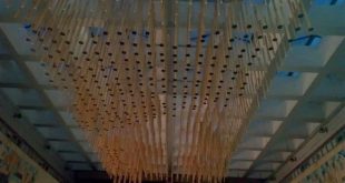 حمص-سانا تحفة فنية تتدلى اليوم في مدخل كلية الهندسة المعمارية بجامعة البعث من خلال معلقة خشبية ذات شكل عناقيدي جميل يتجلى فيه الذوق الهندسي الذي تشاركه 16 طالبا وطالبة قاموا بتنفيذ هذا المجسم الفني الشبيه بالثريا ليكون أيقونة تزين بهو …