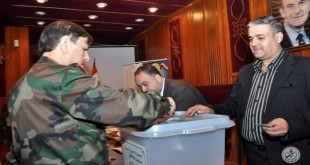 دمشق-سانا شارك مقاتلو الجيش والقوات المسلحة بمختلف صنوفها اليوم في الاستحقاق الدستوري بانتخابات مجلس الشعب في دوره التشريعي الثاني. وأدلى المقاتلون بأصواتهم في الانتخابات في جميع القطع والتشكيلات والمقرات والمنشآت والمؤسسات العسكرية التابعة لوزارة الدفاع ومواقع انتشار وحدات الجيش في …