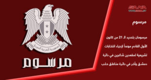 مرسومان بتحديد الـ 21 من كانون الأول القادم موعداً لإجراء انتخابات تشريعية لمقعدين شاغرين في دائرة دمشق وآخر في دائرة مناطق حلب