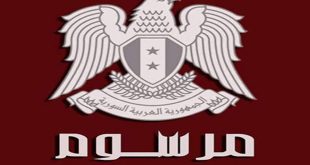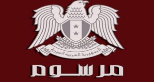 دمشق-سانا أصدر السيد الرئيس بشار الأسد اليوم المرسوم التشريعي رقم 32 لعام 2016 القاضي بتمديد العمل بأحكام المرسوم التشريعي رقم 15 الصادر بتاريخ 28-7-2016 لمدة ثلاثة أشهر. وفيما يلي نص المرسوم التشريعي.. المرسوم التشريعي رقم 32 رئيس الجمهورية بناء على …