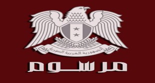 دمشق-سانا أصدر السيد الرئيس بشار الأسد المرسوم التشريعي رقم 38 للعام 2015 القاضي بتطبيق الفقرتين 2 و3 من المادة 74 “المعدلة” من قانون خدمة العلم على كل العاملين الموجودين في خدمة العلم الاحتياطية أو الذين التحقوا بها اعتبارا من 15-3-2011 …