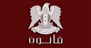 دمشق-سانا أصدر السيد الرئيس بشار الأسد اليوم القانون رقم (20) لعام 2021 لتنظيم تسوية أوضاع المركبات والآليات والمعدات الهندسية وطواقمها البشرية المعبأة عن طريق إدارة التعبئة العامة لصالح المجهود الحربي والتعويض عن الضرر الذي أصاب هذه الآليات أو الطواقم البشرية …