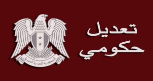 دمشق-سانا أصدر السيد الرئيس بشار الأسد اليوم المرسوم رقم 360 لعام 2018 القاضي بتعديل الحكومة. وفيما يلي نص المرسوم: المرسوم رقم 360 رئيس الجمهورية بناء على أحكام الدستور.. يرسم ما يلي: المادة 1: يسمى كل من السادة.. المهندس حسين عرنوس وزيرا …