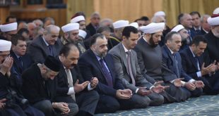دمشق-سانا شارك السيد الرئيس بشار الأسد بالاحتفال الديني الذي أقامته وزارة الأوقاف مساء اليوم بذكرى مولد الرسول الكريم محمد صلى الله عليه وسلم في جامع “عباد الرحمن” في منطقة كفرسوسة بدمشق حيث أدى صلاة العشاء مؤتما بفضيلة الشيخ الدكتور حسام …