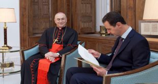 دمشق-سانا تسلم السيد الرئيس بشار الأسد رسالة من البابا فرنسيس بابا الفاتيكان لدى استقباله اليوم السفير البابوي بدمشق الكاردينال ماريو زيناري. وعبر البابا فرنسيس في رسالته عن تعاطفه العميق مع سورية وشعبها في ظل الظروف الصعبة التي تمر بها، مؤكداً …