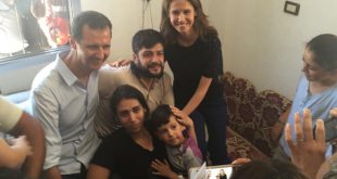 دمشق-سانا زار السيد الرئيس بشار الأسد والسيدة عقيلته وأولادهما اليوم عدداً من جرحى الجيش والقوات المسلحة في قراهم بريف حمص. وذكرت رئاسة الجمهورية على صفحتها على موقع التواصل الاجتماعي “فيسبوك” أن الرئيس الأسد وعائلته زاروا الجريح منهل الديوب أحد أبطال …