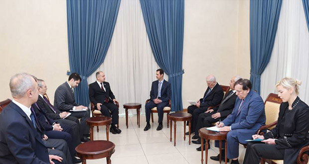دمشق-سانا استقبل السيد الرئيس بشار الأسد أمس وفدا برلمانيا روسيا برئاسة الياس أوماخانوف نائب رئيس مجلس الاتحاد للجمعية الفيدرالية الروسية. وخلال اللقاء جدد الوفد الروسي التأكيد على استمرار وقوف روسيا إلى جانب الشعب السوري وتعزيز صموده في مواجهة الحرب الإرهابية …