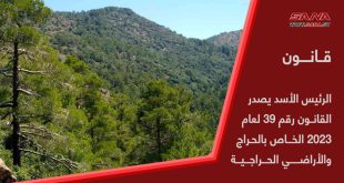 دمشق-سانا أصدر السيد الرئيس بشار الأسد القانون رقم (39) لعام 2023 الخاص بالحراج والأراضي الحراجية بهدف