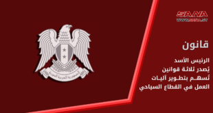 الرئيس الأسد يصدر ثلاثة قوانين تسهم في تطوير آليات العمل بالقطاع السياحي