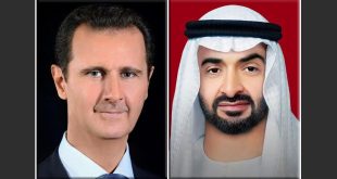 دمشق-سانا أجرى السيد الرئيس بشار الأسد اتصالاً هاتفياً مع الشيخ محمد بن زايد آل نهيان رئيس دولة الإمارات العربية المتحدة.
