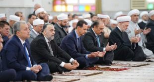 دمشق-سانا أدى السيد الرئيس بشار الأسد صباح اليوم صلاة عيد الفطر السعيد في رحاب جامع الحسن في حي الميدان بدمشق. وأدى الصلاة مع الرئيس الأسد وزير الأوقاف وعدد من المسؤولين في الدولة والحزب وعدد من أعضاء مجلس الشعب ومجموعة من …