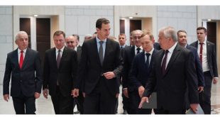 دمشق-سانا استقبل السيد الرئيس بشار الأسد اليوم وفداً روسياً برئاسة ألكسندر لافرنتييف المبعوث الخاص للرئيس فلاديمير بوتين. وتم خلال اللقاء بحث الجهود المشتركة والتعاون الثنائي القائم بين سورية وروسيا الاتحادية في موضوع عودة اللاجئين السوريين الذين اضطرتهم جرائم الإرهابيين لمغادرة …