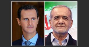 دمشق ـ سانا هنأ السيد الرئيس بشار الأسد الرئيس الإيراني المنتخب مسعود بزشكيان بمناسبة فوزه بالانتخابات الرئاسية، مؤكداً العمل على تعزيز العلاقة الإستراتيجية بين سورية وإيران وفتح آفاق جديدة للتعاون الثنائي. وقال الرئيس الأسد في برقية تهنئة أرسلها للرئيس بزشكيان: …