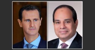 دمشق-سانا أجرى السيد الرئيس بشار الأسد اتصالاً هاتفياً بالرئيس المصري عبد الفتاح السيسي هنأه خلاله بذكرى ثورة 30 يونيو التي انتصر فيها الشعب المصري على التطرف. وأكد الرئيس الأسد أن ثورة الثلاثين من يونيو أعادت مصر إلى مكانها الطبيعي الذي …