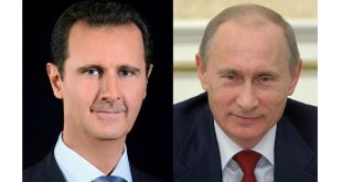 دمشق-سانا ناقش السيد الرئيس بشار الأسد والرئيس الروسي فلاديمير بوتين خلال اتصال هاتفي آخر مستجدات الأوضاع السياسية في سورية واتفاق إدلب وكيفية تنفيذه. وأعرب الرئيس الأسد خلال الاتصال عن تعازيه للرئيس بوتين والشعب الروسي بحادثة سقوط الطائرة العسكرية الروسية “ال …