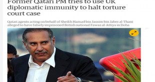 لندن-سانا كشفت صحيفة الغارديان البريطانية أن رئيس وزراء قطر السابق حمد بن جاسم بن جبر آل ثاني يحاول استغلال الحصانة الدبلوماسية التي يتمتع بها للتهرب من الخضوع للمحاكمة في قضية رفعها ضده مواطن بريطاني أكد فيها مسؤولية حمد عن سجنه …