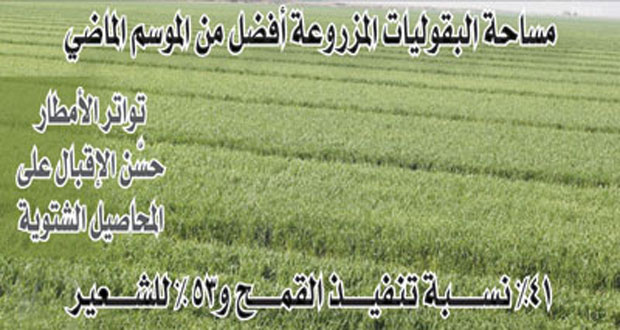 المزيدالزراعة: 1.5 مليون هكتار المساحات المزروعة بالقمح والشعير
