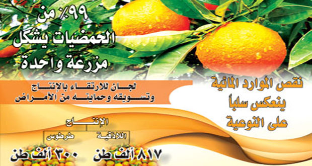 أكدت وزارة الزراعة أن التقديرات الأولية لإنتاج الحمضيات للموسم الحالي نحو 1.1 مليون طن 75٪ منها في اللاذقية و24٪ في طرطوس و1٪ في محافظات درعا وحمص والغاب وإدلب ودير الزور. وبيّن المهندس سهيل حمدان مدير مكتب الحمضيات بالوزارة في تصريح …