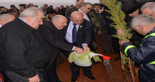 حملة تشجير في حي حلب الجديدة بمدينة حلب