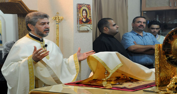 صلاة لأجل السلام في سورية بكنيسة القديس أنطونيوس الكبير للروم الأرثوذكس بجرمانا