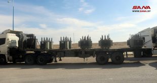 شحنة تجهيزات كهربائية مقدمة من وزارة الكهرباء إلى محافظة دير الزور