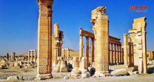 تدمر-سانا تشارف المرحلة الثانية على الانتهاء من عملية ترميم قوس النصر الأثري في تدمر