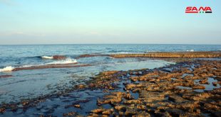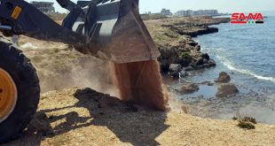تواصل عمليات تنظيف شاطئ جبلة من بقع الفيول المتسربة من قبل عمال مديرية البيئة ومجلس المدينة