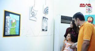 رسومات عفوية لهواة بأعمار صغيرة ضمن معرض شموع واعدة بالسويداء