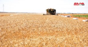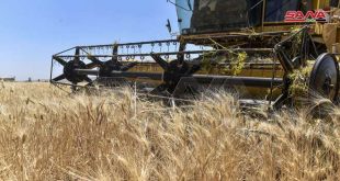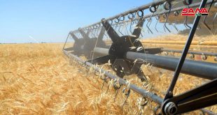 من حصاد القمح في قرية نقيرة بريف حمص الجنوبي الغربي