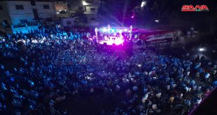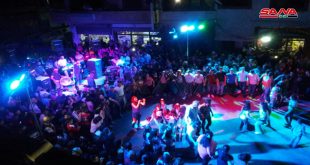 حمص-سانا نظمت الفعاليات الشعبية والأهلية بحي الزهراء في مدينة حمص اليوم حفلاً فنياً شعبياً حاشداً في شارع الستين أحياه نخبة من نجوم الغناء الشعبي بمناسبة إنجاز الاستحقاق الرئاسي وفوز الدكتور بشار الأسد بمنصب رئيس الجمهورية. ورفع المشاركون في الحفل الأعلام …