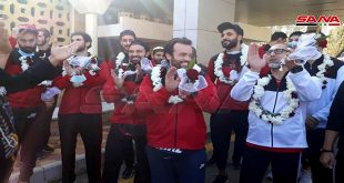 من استقبال منتخب سورية لكرة السلة للرجال على الحدود السورية اللبنانية في جديدة يابوس.. المنتخب فاز أمس على نظيره الإيراني 77-70 في التصفيات الآسيوية.