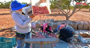 حمص-سانا تستمر الأيادي الطيبة بجني مواسم الخير في حمص وتقديرات بإنتاج 870 طناً من الفستق الحلبي في المحافظة. وتتركز زراعة الفستق الحلبي في محافظتي إدلب وحماة. تصوير: نقولا الخوري