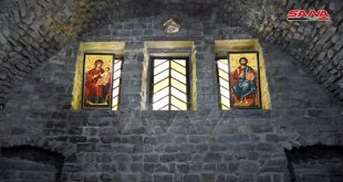 تعد القاعة الأثرية في كاتدرائية الأربعين شهيداً في حي بستان الديوان وسط حمص من أبرز المعالم الأثرية في هذه المدينة التي تزخر بأوابد أثرية شاهدة على الحضارات المتعاقبة في سورية. تصوير: سامر الشامي
