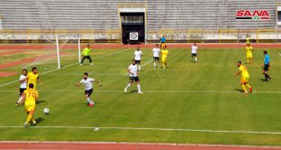 من مباراة فريقي تشرين والجيش في اللاذقية اليوم بعد استئناف مباريات الدوري الممتاز لكرة القدم بعد توقف استمر قرابة الشهرين بسبب الإجراءات الاحترازية للتصدي لفيروس كورونا.. انتهت المباراة بتعادل الفريقين 2-2