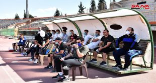 من مباراة حطين والنواعير في حماة اليوم بعد استئناف دوري كرة القدم بعد توقف استمر قرابة شهرين بسبب الإجراءات الاحترازية للتصدي لفيروس كورونا.. انتهت المباراة بفوز حطين 2-0