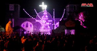 إضاءة شجرة الميلاد في بلدة قطينة بريف حمص